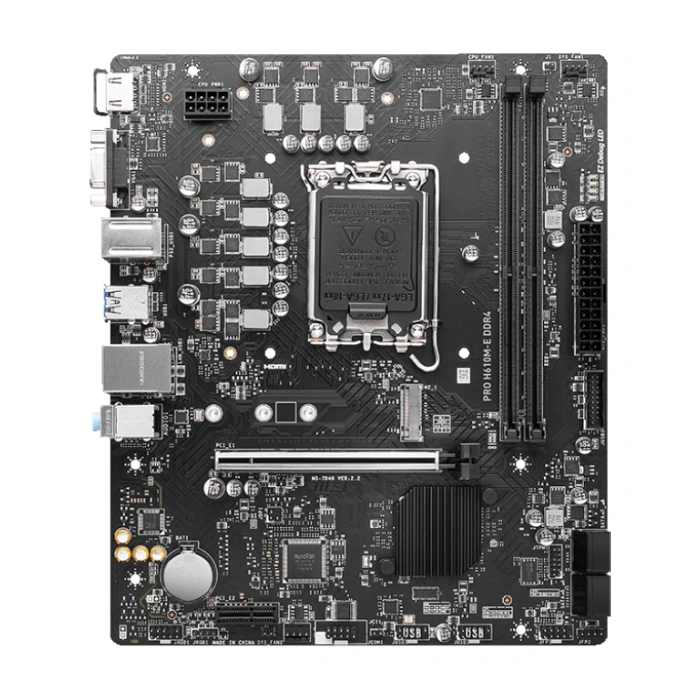 MSI PRO H610M-E DDR4 LGA 1700 Motherboardمادربرد MSI PRO H610M-E DDR4 یکی از محصولات اقتصادی و پرکاربرد شرکت MSI است که برای کاربریهای اداری، خانگی و سیستمهای میانرده طراحی شده است. این مادربرد با استفاده از چیپست Intel H610 و سوکت LGA 1700 از پردازندههای نسل ۱۲ و ۱۳ اینتل Core i3, i5, i7, i9 پشتیبانی میکند و انتخابی مقرونبهصرفه برای کسانی است که به دنبال یک سیستم پایدار و کارآمد هستند.