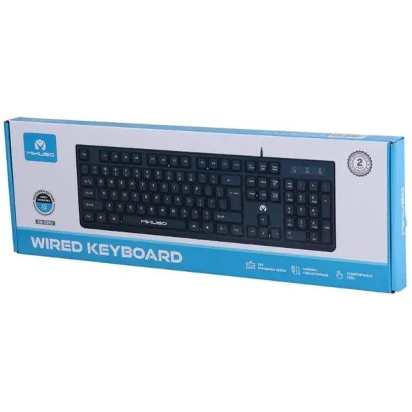 کیبورد با سیم Mikuso مدل KB‑039U یک کیبورد کاربردی، ساده و قابلاعتماد است که برای استفادههای روزمره در خانه، اداره، کلاسهای آموزشی و محل کار طراحی شده است. این کیبورد با اتصال سیمی USB به سیستم، راهاندازی بسیار ساده و بدون نیاز به نصب درایور را فراهم میکند و با اکثر کامپیوترها و لپتاپها سازگار است.