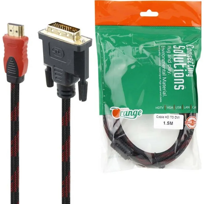 کابل DVI to HDMI برند ORANGE طول 1.5 متر یک رابط کاربردی برای انتقال تصویر دیجیتال از دستگاههایی با خروجی DVI (مثل کارت گرافیک قدیمی، کامپیوتر یا لپتاپ) به نمایشگرهایی با ورودی HDMI (تلویزیون، مانیتور، پروژکتور) است.